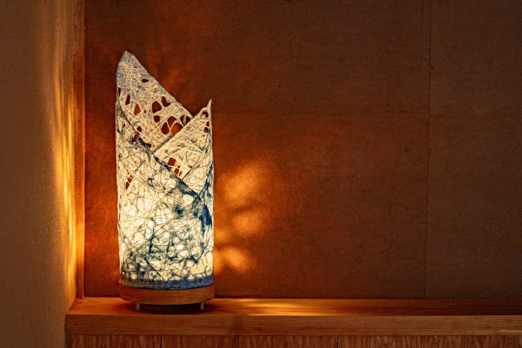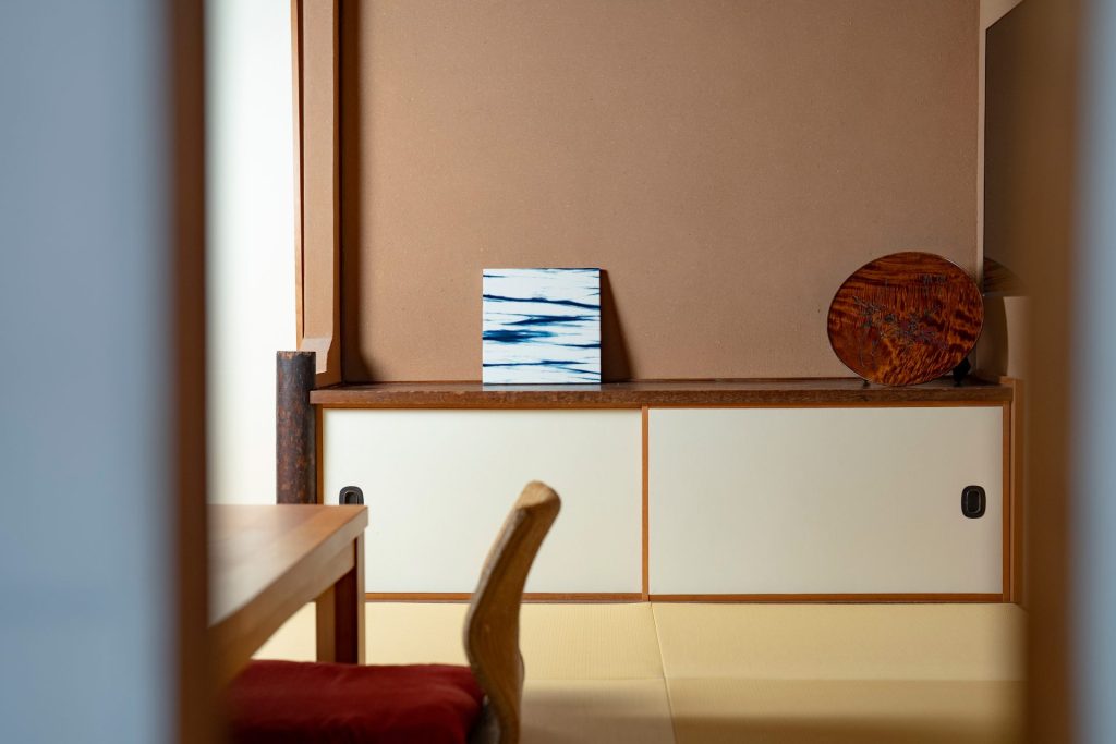 藍の深い青と光の陰影がつくり出す静けさは、ホテル・旅館・住宅空間に落ち着きと上質さをもたらします。